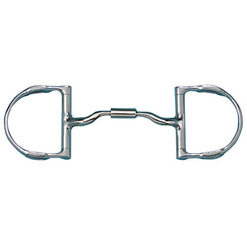 Myler Comfort Snaffle Dee With Hooks English "D" Comfort Ported Barrel "Comfort Snaffle" features a free-rotating wide barrel and curved mouthpiece, specially designed to not pinch the horse's tongue-avoiding pain and discomfort. Hooks on dees to attach headstall and reins. With rein pressure, mouthpiece rolls forward and downward into the tongue and bars, encouraging the horse to break at the poll 5" mouth. Level 2